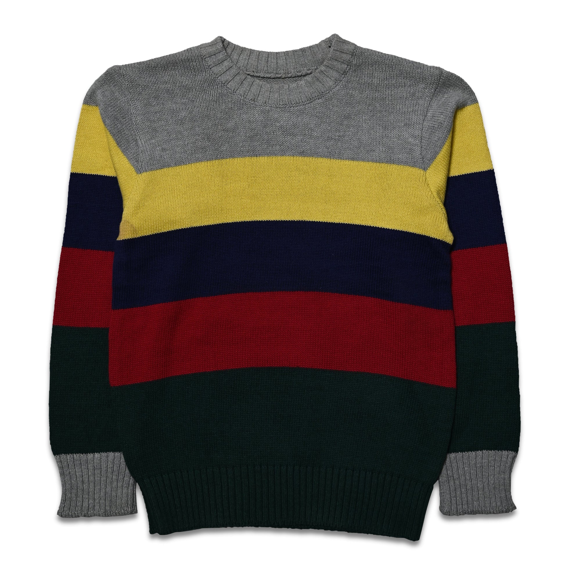 A great everyday sweater that will keep him comfortable and cozy whatever the weather. Made in a fine gauge knit with all over happy stripe. 100% Cotton.